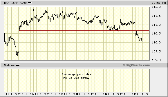 Weiterhin bärisch ist, dass die Philadelphia Banking Index (BKX) heute unter seine 10-tägige Unterstützung fiel: