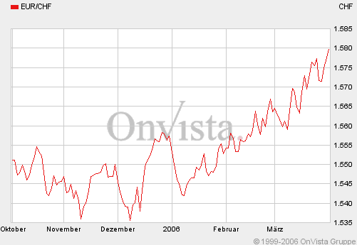Doch nicht alle Carry-Trades wurden aufgelöst. Einige Specs haben den Franken als Ersatz für den Yen entdeckt: Zinsen auf den Franken kosten 1,1 % (plus Spesen), während es auf AUD, NZD und auch USD immer noch Zinsen von 4,75 % aufwärts gibt. Auch diese Franken-Verkäufe gegen andere Währungen und Yen haben auch den Kurs gedrückt. Carry-Trades in Franken sind auch deshalb interessant, weil der Franken fällt, während der Yen steigt. Da gibt es zusätzlich zum Zinsgewinn also auch noch Währungsgewinne - zumindest, wenn das derzeitige Momentum (CHF-negativ) anhält. Im Fall eines Iran-Kriegs kann das freilich auch schnell wieder drehen.