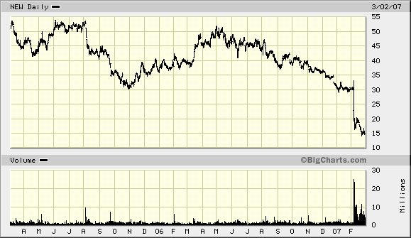 2-Jahres-Chart von NEW CENTURY. Freitag ging es nachbörslich weitere 25 % runter auf 11 Dollar.