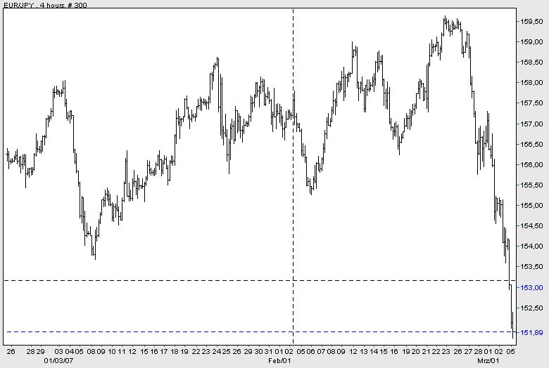 Für die Verluste am Montag wurden erneut auch die so genannten Carry Trades verantwortlich gemacht. Dabei leihen sich Anleger Geld in niedrig verzinsten Währungen wie dem Yen und legen die Mittel in Hochzinswährungen wie Euro oder Dollar an. "Hedge-Fonds-Manager und Spekulanten, die Aktien mit Geld aus Carry Trades gekauft haben, müssen ihre Aktien jetzt verkaufen, um ihre Währungspositionen zu schließen", sagte Kenichi Hirano von Tachibana Securities.