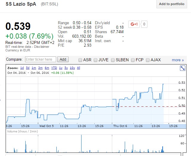Das führe vorerst dazu dass der Börsenwert der Lazio um 1 Milliönchen zulege weil
