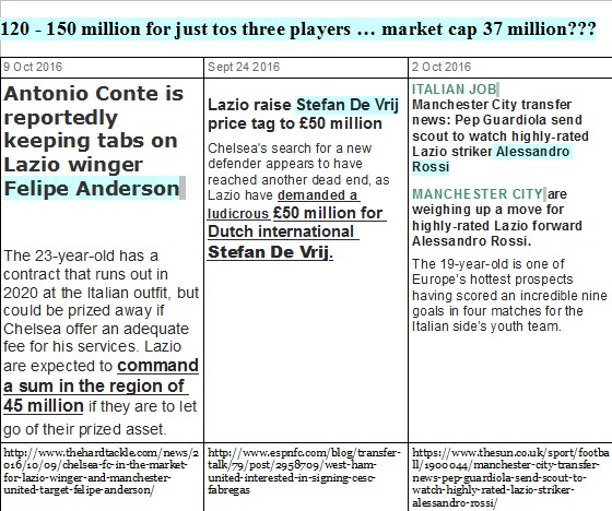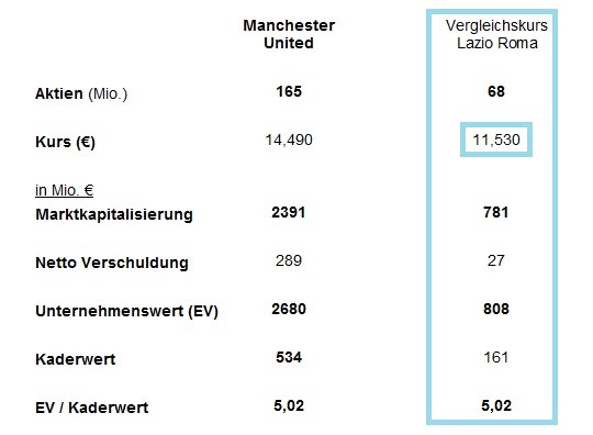 sollte die Lazio an der Börse zu 780 Mio euro bewertet sein (statt aktuell 36 Mio.) und somit in etwa so viel wie Chinezen im Schnitt für Inter und AC Mailand hinblätterten