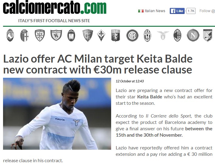 inklusive Keita decken 4 Lazio-spieler bereits den gesamten offiziellen Kaderwert von 161 Mio. Euor ab.