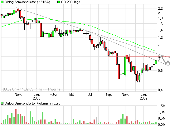 Natürlich muss man nun von Quartal zu Quartal sehen, wie die Aussichten sind - auch eine Dialog wird sich nicht der Krise entziehen können. Nur wenn man die ganzen anderen Halbleiterunternehmen betrachtet (Klein wie Groß), mit Umsatzeinbußen von bis zu 50 %, steht eine Dialog glänzend dar mit Umsatzsteigerungen!