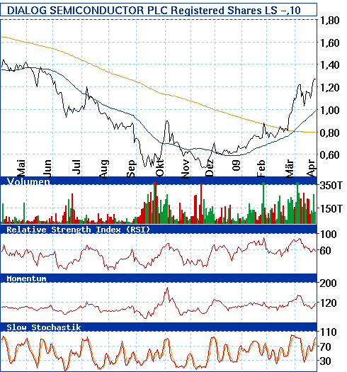 Die britische Dialog Semiconductor plc (ISIN GB0059822006 / WKN 927200), ein Entwickler und Lieferant von Halbleitertechnologien, konnte im ersten Quartal 2009 ein Umsatz- und Gewinnplus erzielen.