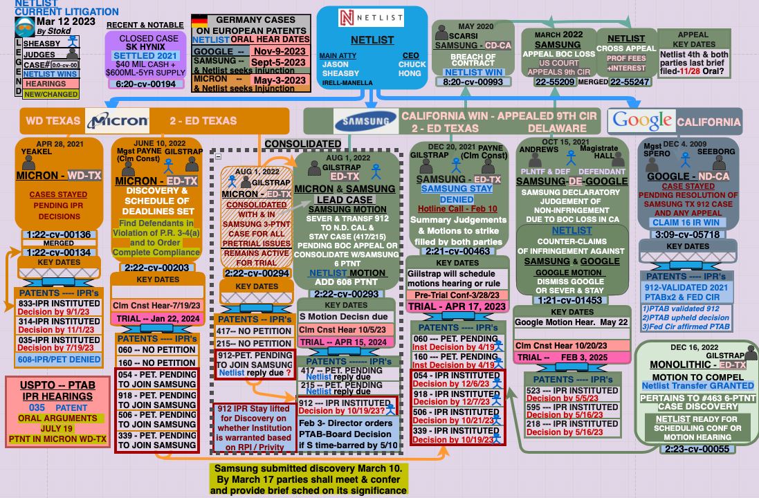 zu dem gerade geschriebenen, "Ende des Monats Markman hearing (gegen Micron in Texas)"