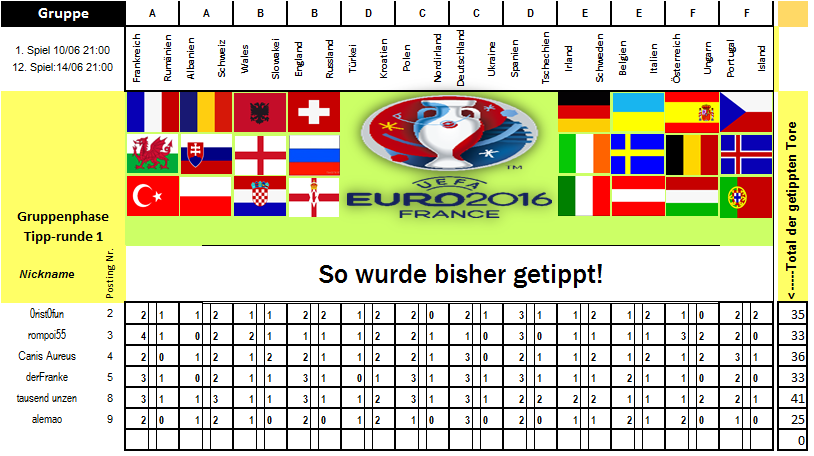 EM 2016 - Tipp-Runde 1 - Gruppenphase -