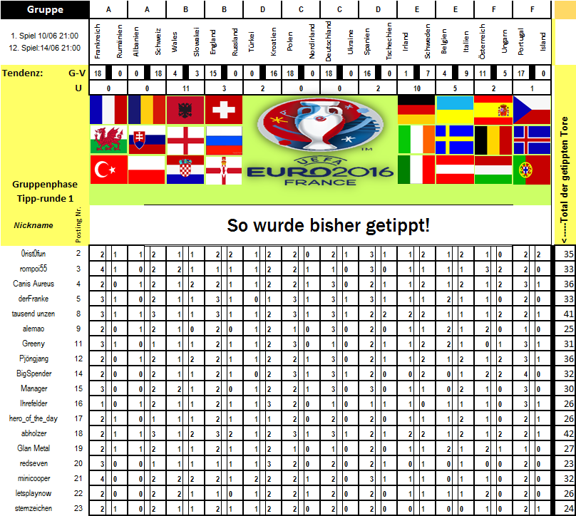 EM 2016 Tipprunde 1 Vorrunde Teil1