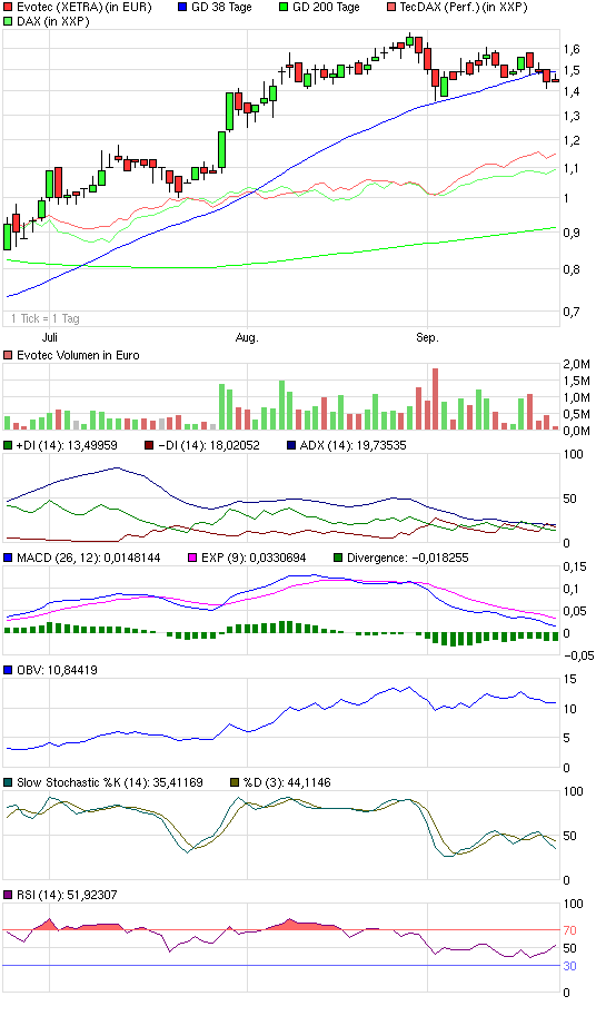 hallo Leute ich bin auf die evotec aufmerksam geworden ich habe vor bei evotec einzusteigen weil ich denke das evotec irgendwan mal aufwachen wird und dann geht sie ab wie human genome!!Das evotec bei Alzheimer und schlafstörung forscht finde ich interresant falls der durchbruch irgendwann kommen sollte