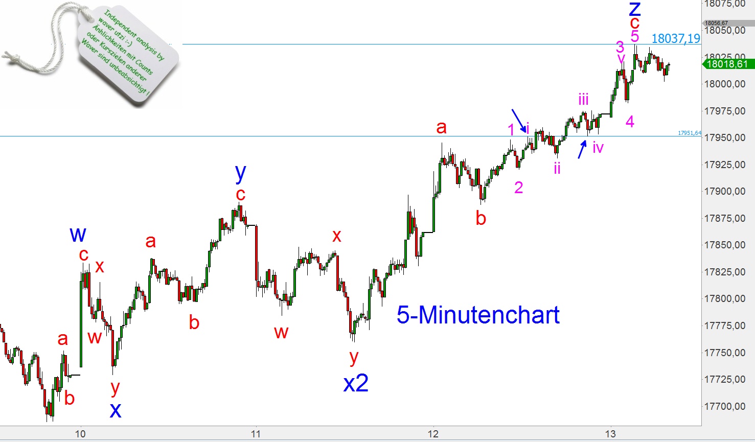 allerdings­ ist wie gesagt das 18040-iger­ kein zwingender­ Umkehrpunk­t, aber als signifikan­tes Ziel hat es sich jetzt schon markiert :-)