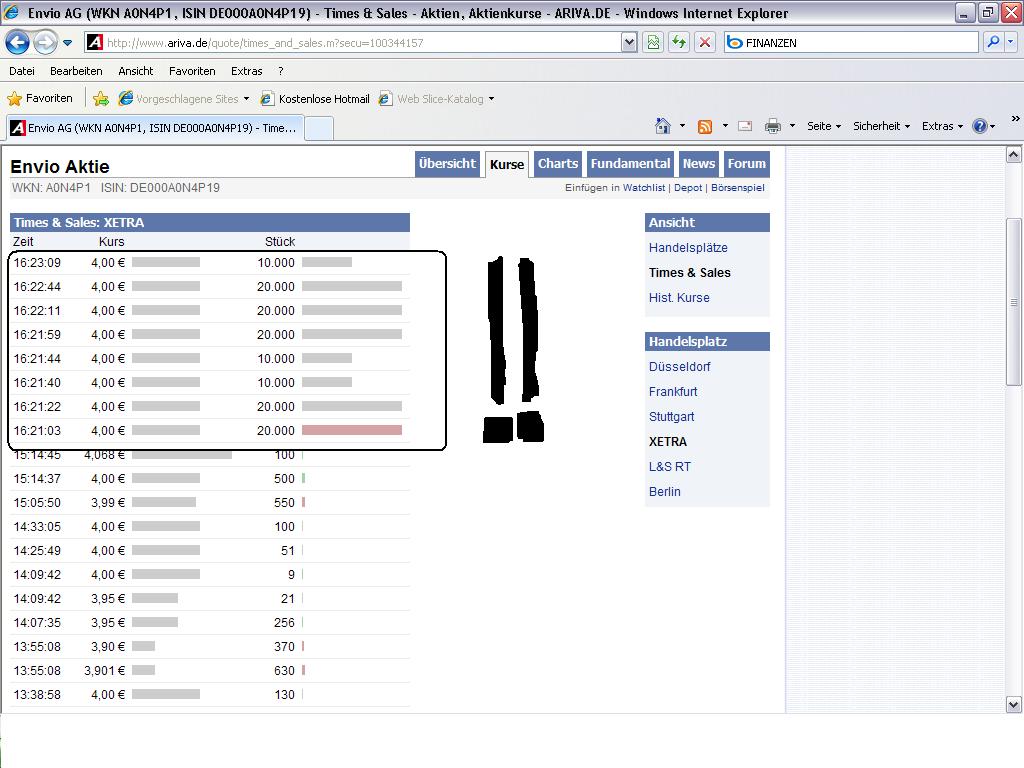 Wenn ich mir die heutigen Umsätze in Aktien von Envio anschaue, dann stellen sich schon einige Fragen.