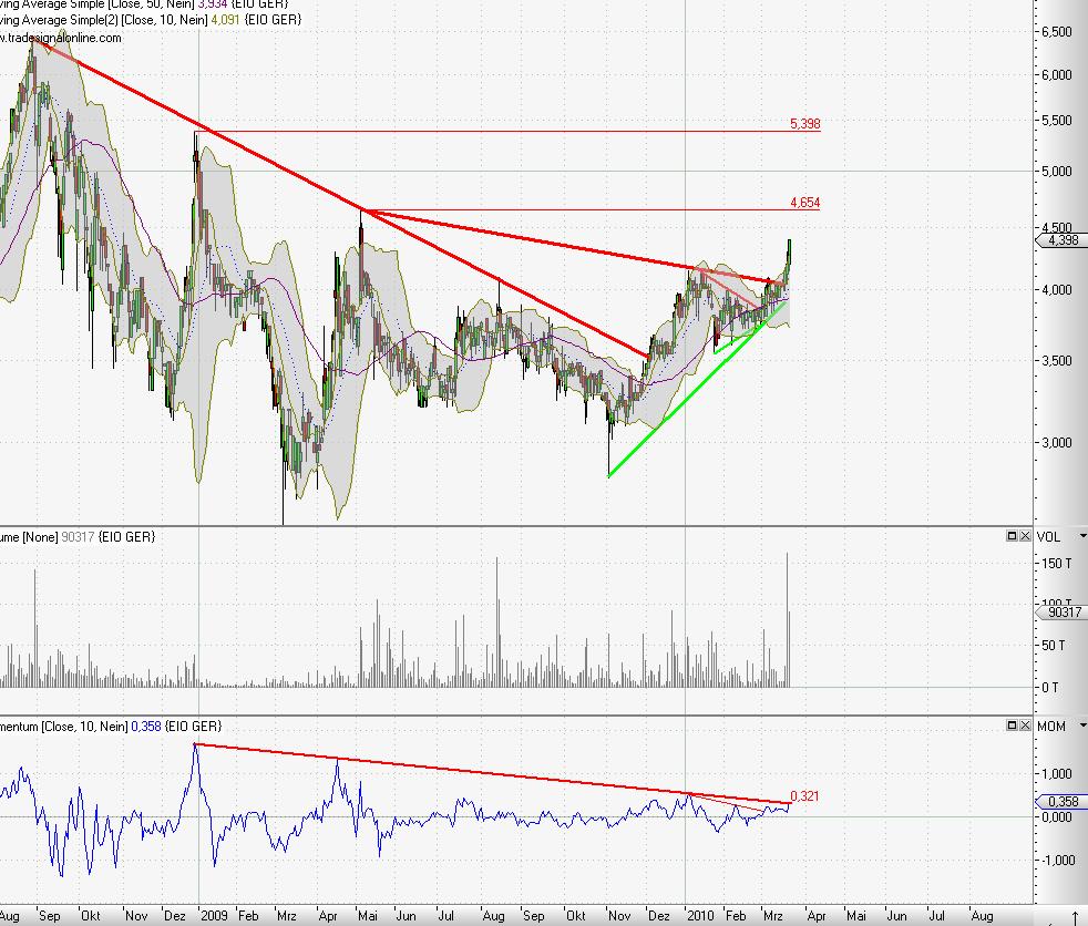 das gestrige anziehende volumen und der steigende kurs waren bestätigend.