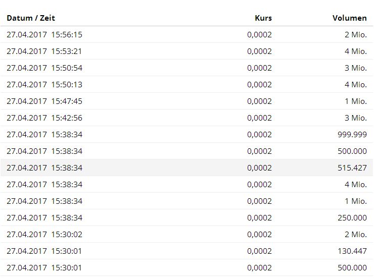 Hoffentlich nicht der finale Abverkauf. Denn ist ist nur noch ein einziger Schritt zu den 0,0001 ist das bedeutet eigentlich das Finale ...