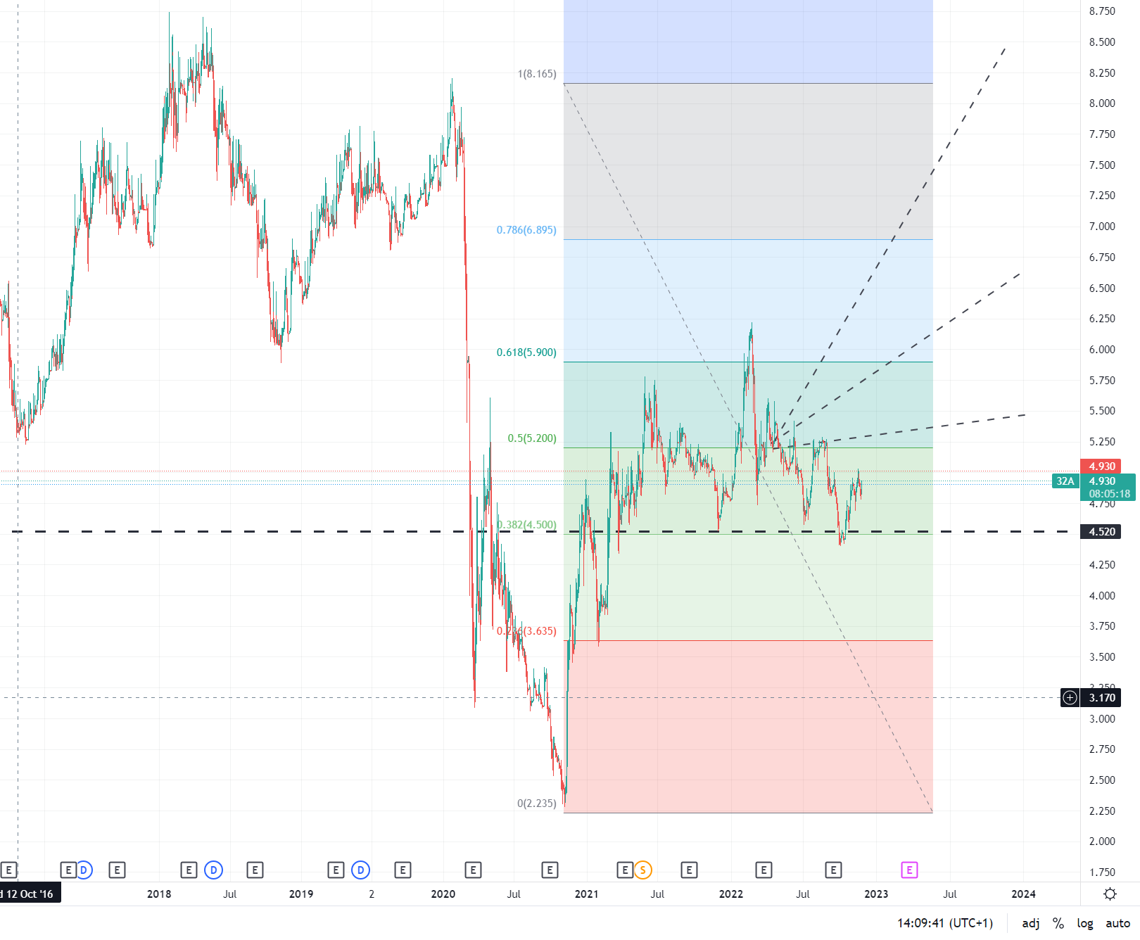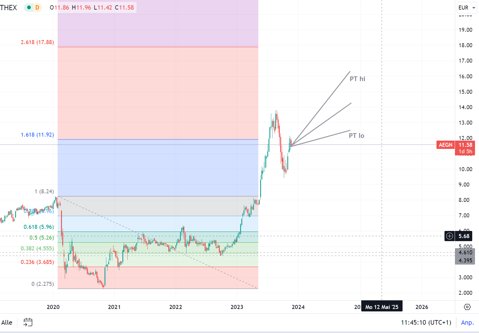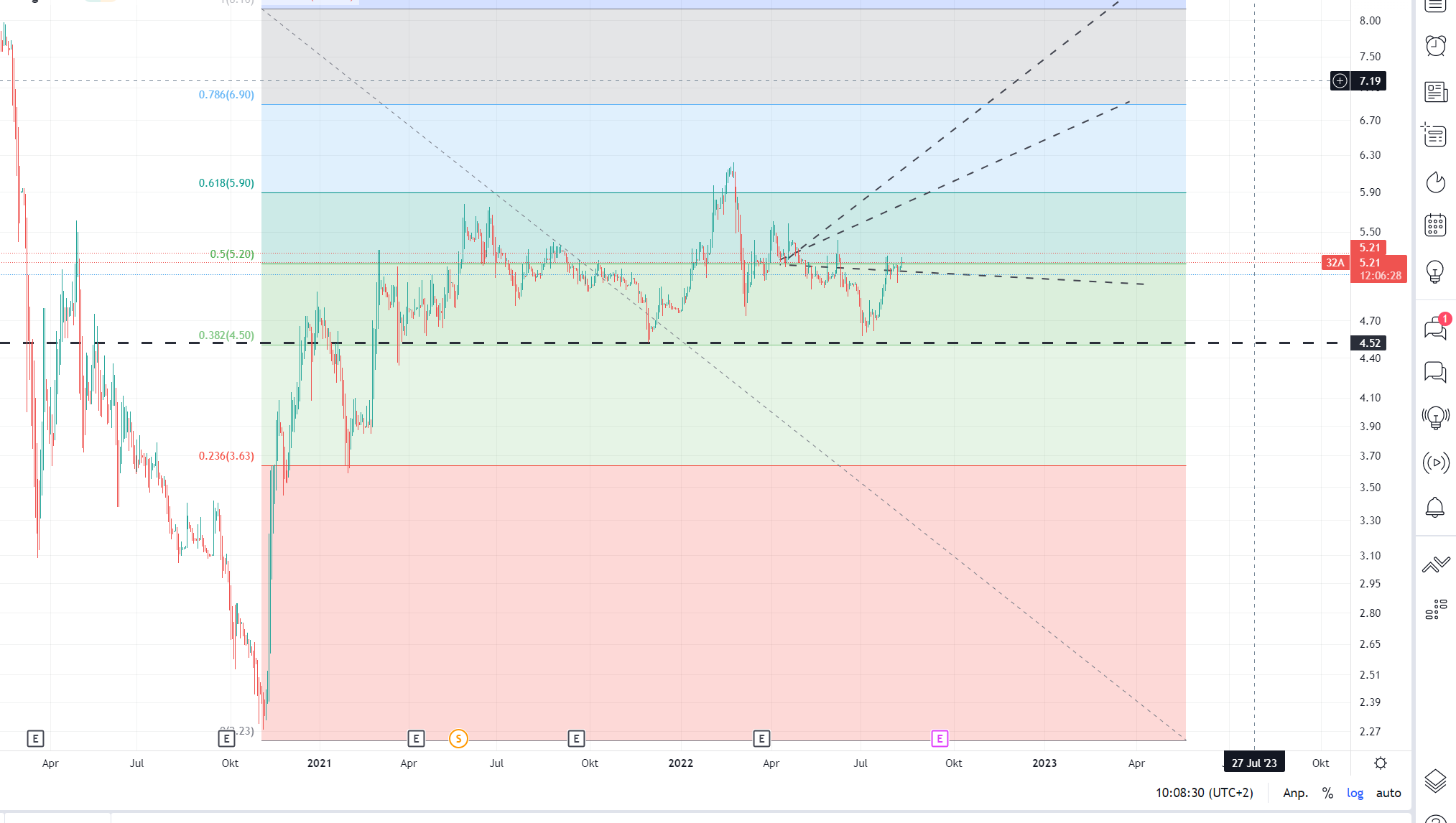 jetzt sind alle Analysten grün, niedrigstes Ziel 6,30 €. Der Korridor im Chart (die gestrichelten Linien) wird also schmaler aber auch gleichzeitig präziser, das high target liegt nun auf 6,65 €.