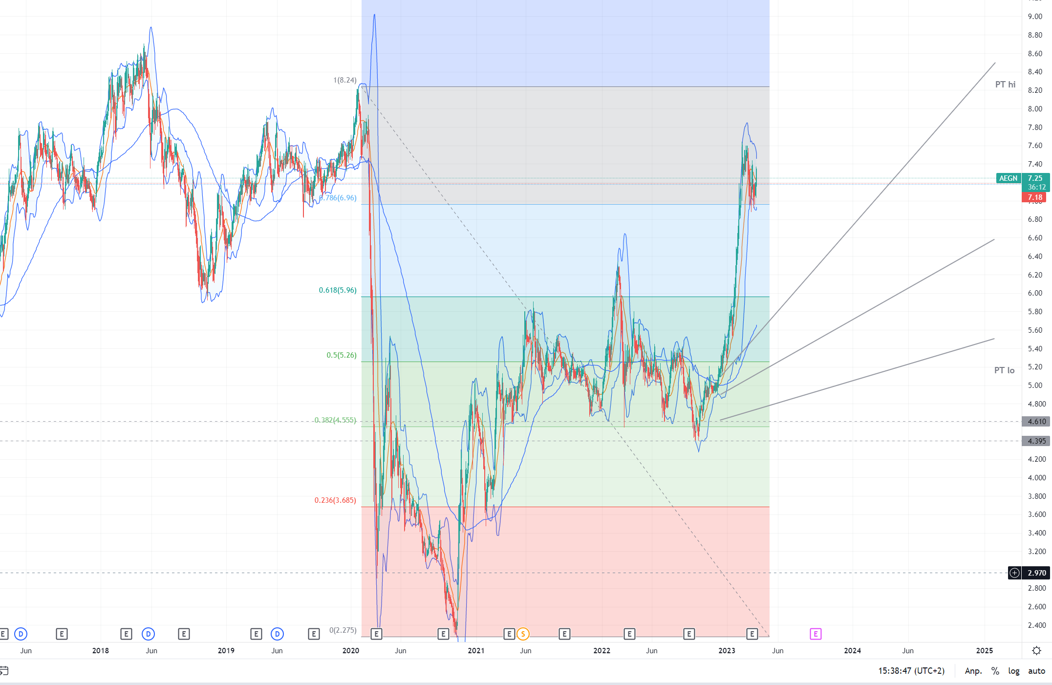 Kurs bleibt vorerst an der unteren Kurszielgeraden. Das rote Scoring liegt ausschließlich an Covid, die Vor-Corona-Vorhaben laufen wieder an, die Bonitätsfaktoren sind natürlich aufgrund der Coronabeule schlecht, im Zusammenwirken mit den anstehenden Finanzierungen für die Flottenerneuerung und /-erweiterung wird das auch noch eine Weile so bleiben. Der untere Kulminationspunkt liegt hinter uns, wenngleich noch die Gefahr eines Zurückkommens bis an die Retracekante besteht, allerdings sollte dieses Risiko aufgrund der niedrigen Volumina überschaubar sein. Der turn around liegt noch vor uns. Der Piotroski-Wert ist schon maximal, der rote aaqs-score hält schön die Junkies fern.
