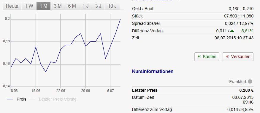 Aber das ist natürlich alles nur meine eigene Meinung. Das die Käufer von heute das anders sehen ist klar. Aber klar ist auch, dass die Käufer von Nov. 14 zu fast 0,30 € noch erheblich im Minus sind. Wie wohl die meisten, die die Aktie nach Kauf nicht gleich wieder abgestoßen haben.