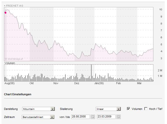 | FREENET AG ISIN: DE000A0EAMM0 | 4,27 (0,47 %) Xetra (15:28:53) |