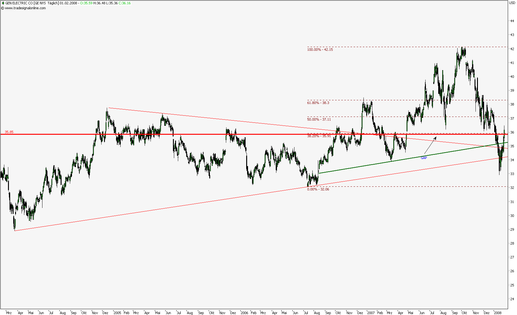 Der Gewinn je Aktie von 0,68 USD habe sich im Rahmen der Konsenserwartungen bewegt. Das Management habe die Planung bekräftigt, in 2008 ein EPS-Wachstum von mehr als 10% erwirtschaften zu wollen, was die Analysten auch für erreichbar halten würden. Die Prognose belaufe sich aktuell auf 2,42 USD. General Electric sei gut aufgestellt, um ein überdurchschnittliches Gewinnwachstum zu erzielen. Die Aktie könnte eine Erholung starten.