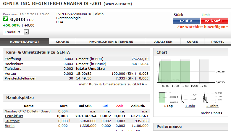 Ich habe immer gedacht ich hätte die einzigsten Aktien von Genta. Aber da zuckt es doch noch mal wie eine Maus unter dem Teppich.