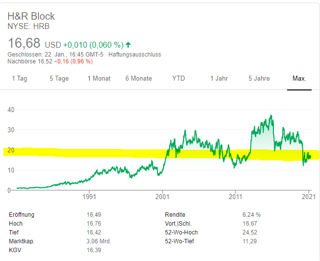 Die Firma ist mir durch einen Deal in Erinnerung geblieben, den sie im Jahr 1980 vollzog: sie kaufte damals für USD 23 Mio den Internetdienstleister Compuserve auf, der seinerzeit auch gern mal "CI$" bezeichnet wurde. 19 Jahre später verkaufte H&R Block das Unternehmen für schlappe USD 1,2 Mrd an WorldCom, in weiterer Folge wurde es 1998 an AOL verhökert, bis es dann 2009 zur Abschaltung kam.