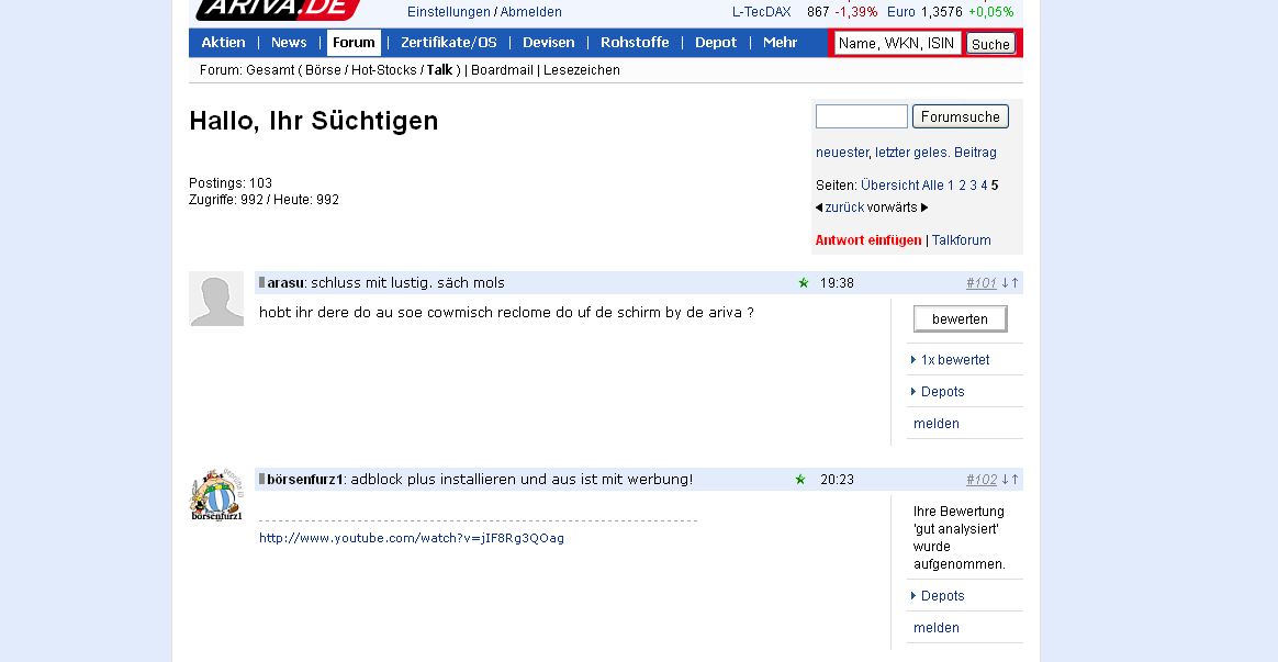 In der Zeit, gab ich wohl immer gleich ariva ein auch wenn ich eigentlich auf eine ganz andere Seite wollte.