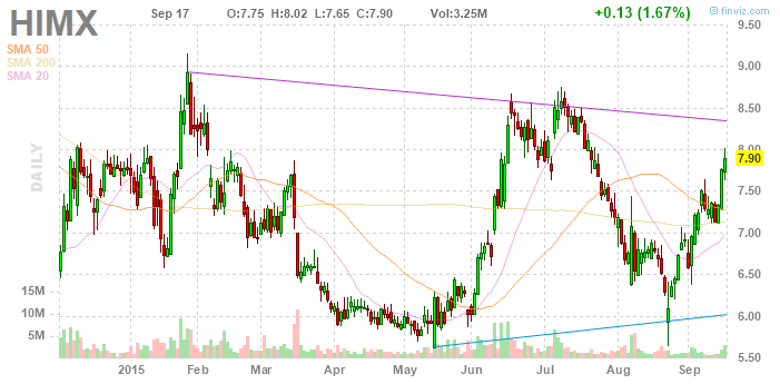 Ferner bezeichnet die Bank of America/Merrill Lynch Himax als Top-Pick 2015, mit einem Kursziel von 12,50 $