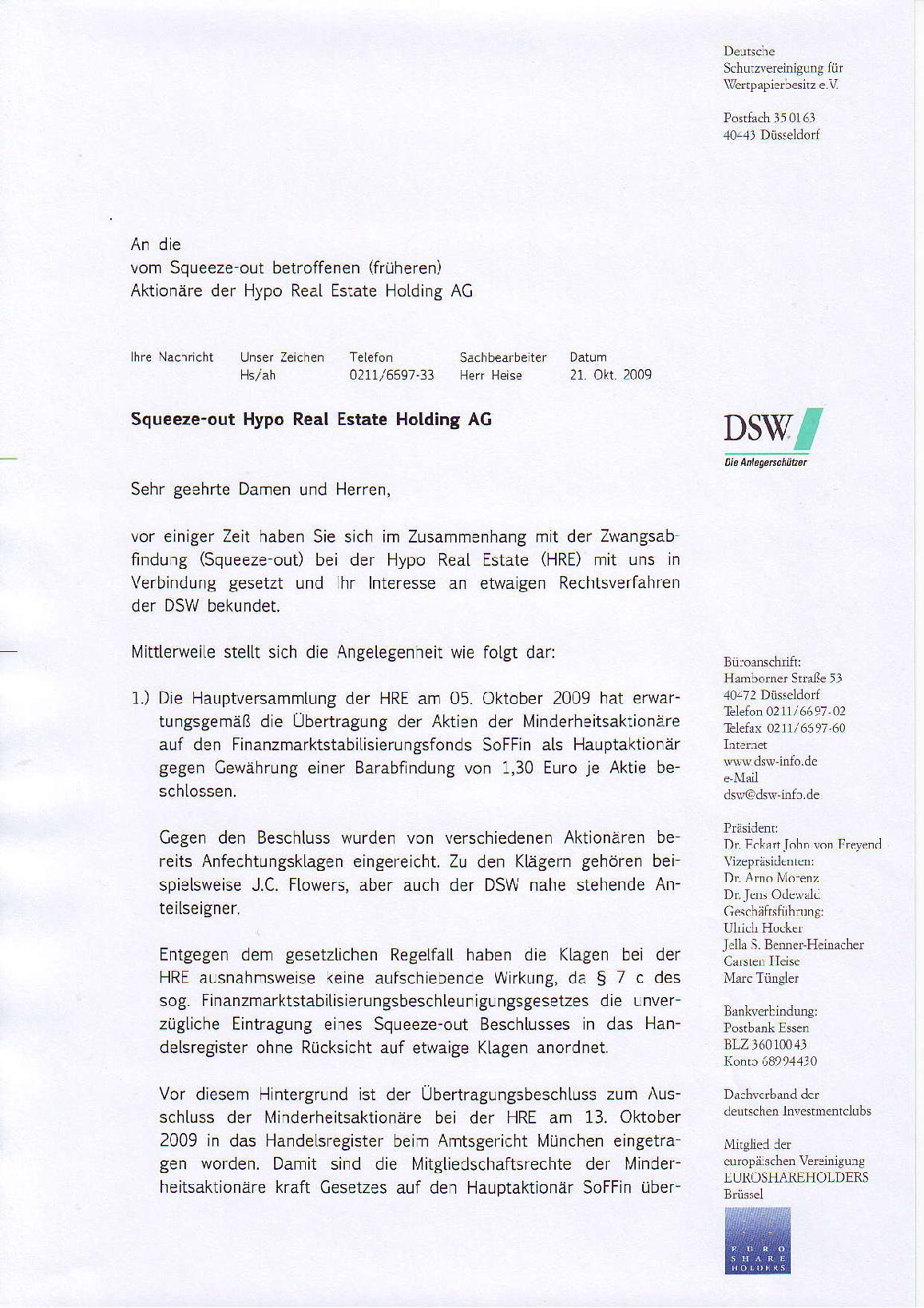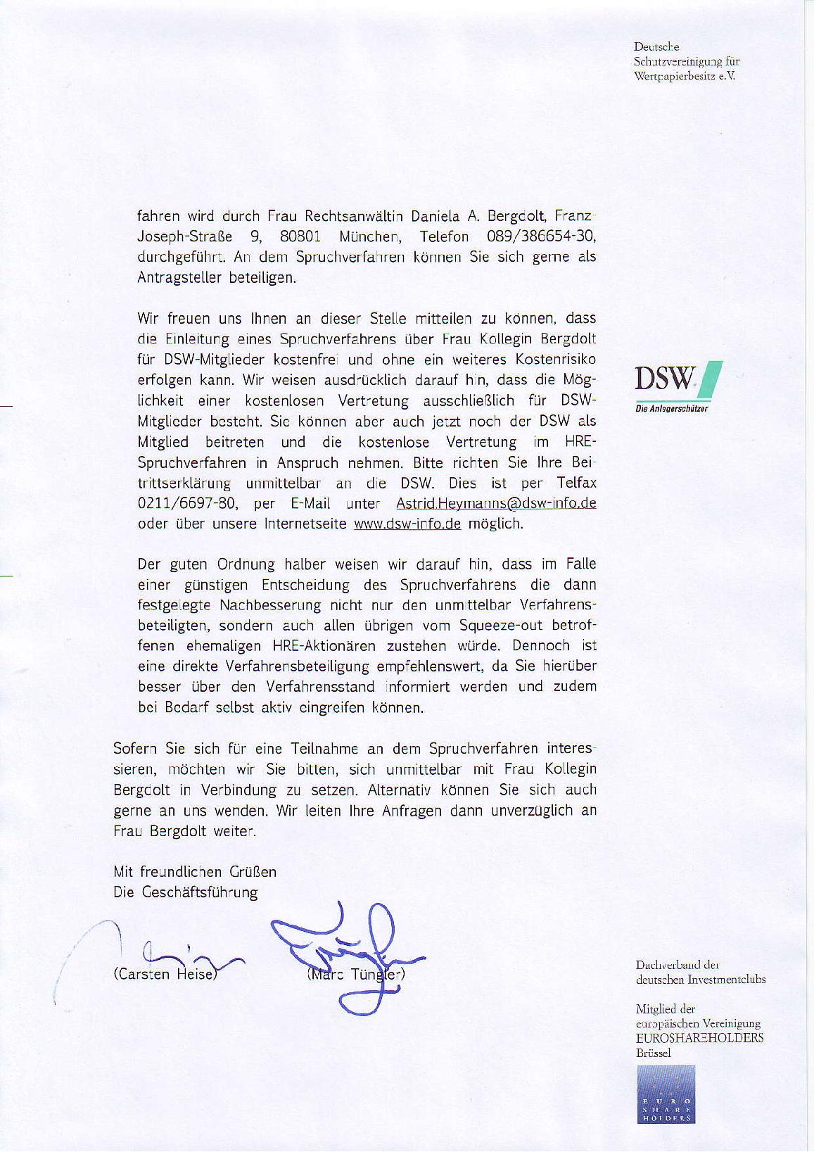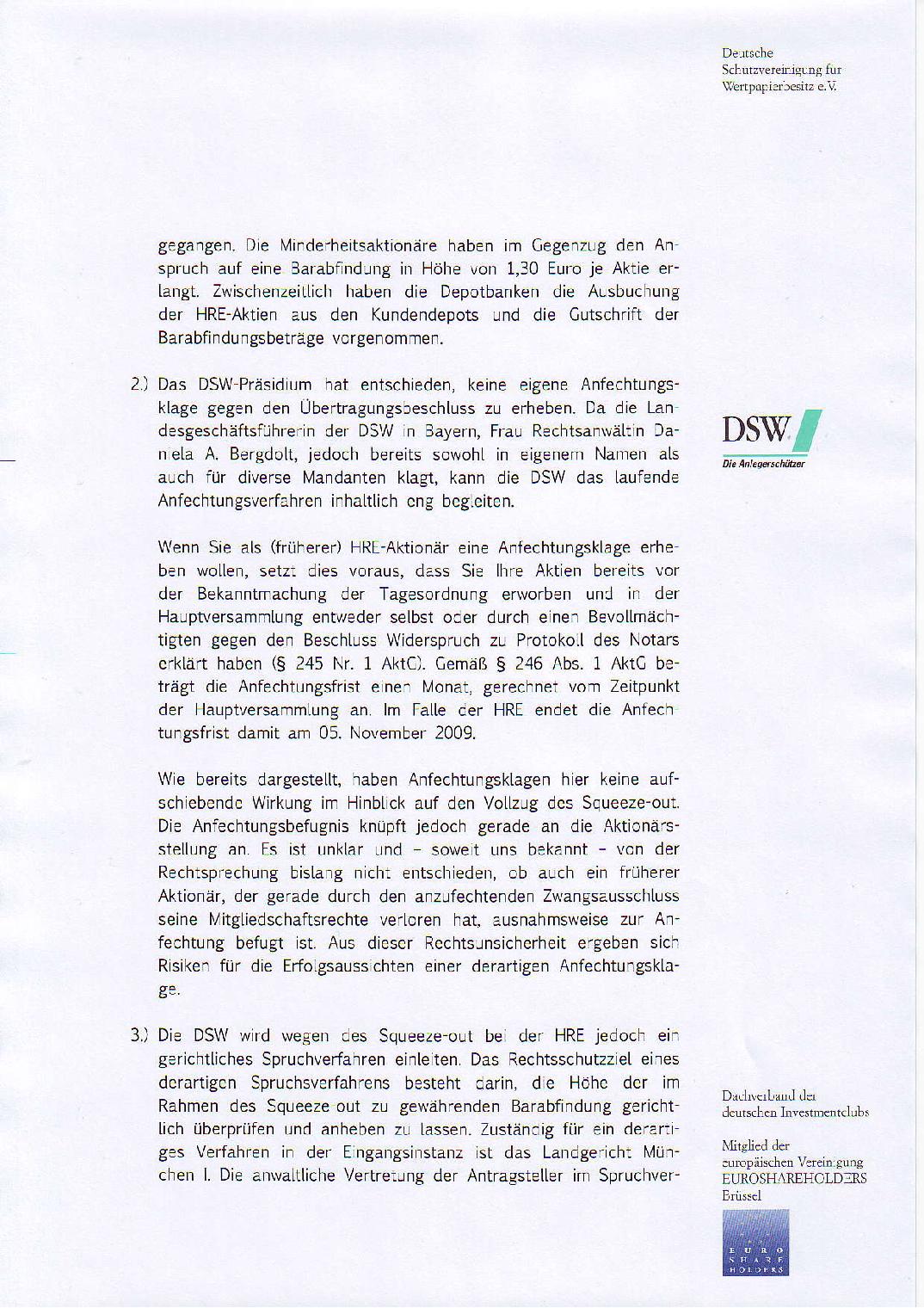Letztendlich ist es allerdings egal und wahrscheinlich echte Haarspalterei...es haben mittlerweile einige Klagen gegen den Squeeze-Out eingereicht. Ob der DSW da auch noch klagt oder nicht ist letztendlich wirklich egal.