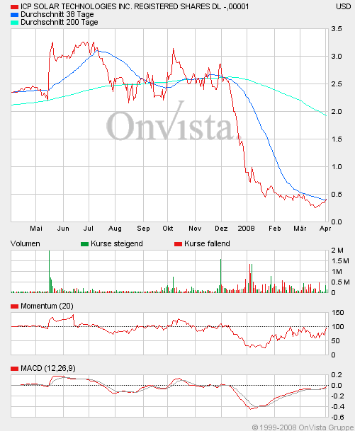 ICP Solar scheint auch einer der vielen Werte zu sein, die von mindestens dem investoralert gepuscht worden sind, aber eigentlich ohne Substanz sind wenn man sich mal die Umsatz- und Gewinnentwicklung der letzten Quartale ansieht.