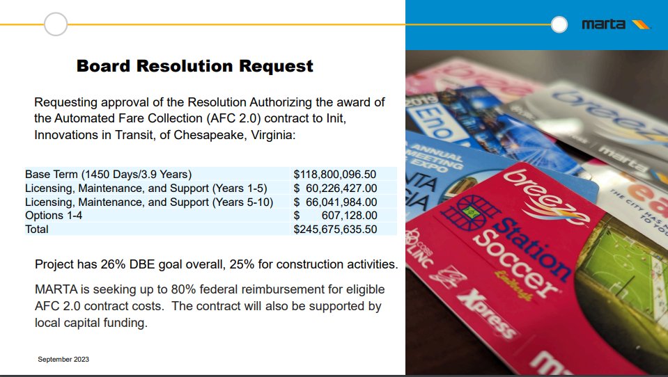 Der an init vergebene Auftrag hat ein Volumen von über 100 Millionen US-Dollar für die Konzeptionsphase, Installation und Einführung des AFC Systems 2.0. Darüber hinaus kann sich bei Abschluss von Optionen für betriebliche Services und Wartung über 10 Jahre das Auftragsvolumen verdoppeln. Der General Manager und CEO von MARTA, Collie Greenwood, sieht viele Vorzüge für den Verkehrsbetrieb: "In erster Linie wird dieses neue, hochmoderne Smart Ticketing System unseren Service verbessern und unseren Kunden sehr viel mehr Komfort bieten. Darüber hinaus wird AFC 2.0 es uns ermöglichen, unsere Abläufe weiter zu optimieren und die Fahrgeldeinnahmen zu erhöhen. Es ist eine Win-Win-Situation sowohl für MARTA als auch für unsere Fahrgäste."
