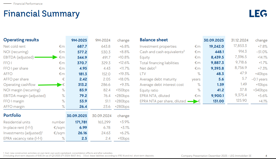 LEG Immobilien SE: Starkes Neunmonatsergebnis und weiteres Gewinnwachstum in 2026