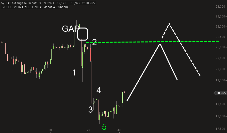 Unabhängig der Korrektur wäre hier Niveau der Welle 4 das Ziel...das liegt bei 21,20...