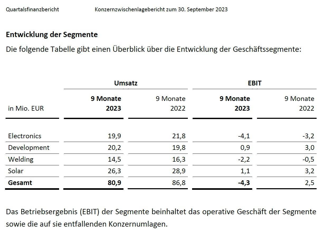 Wenn die Jungs tatsächlich gut 130 Mio Umsatz und +8 Mio EBIT hin bekommen, dann würde das der Kapitalmarkt sicher würdigen. Trendwende nicht ausgeschlossen.