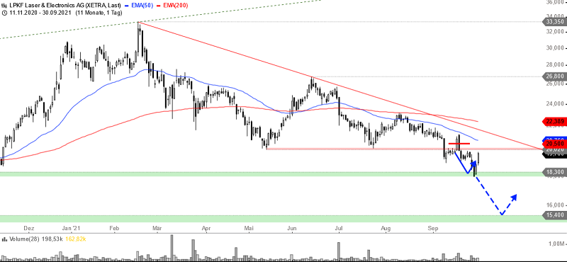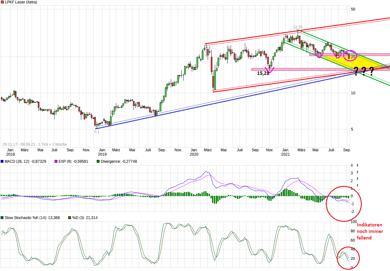 Habe auch irgendwie das ungute Gefühl, daß nach der heute völlig kampflosen Aufgabe der Mehrfachunterstützung um 20€ hier nun weiteres abgleiten in die Region 15/16 folgen könnte. Hier scheinen ja instit. Investoren plötzlich doch größere Zurückhaltungen zu haben und die 20€ nicht mehr zum kaufen zu nutzen. Ist die Frage, ob hinter den Kulissen bestimmte Dinge zum Q.3 Verlauf schon durchsickern ( immerhin ist in 3 Wochen das 3. Quartal schon vorbei) oder ob hier eher eine allgemeine Vorsicht gegenüber der Branche der Auslöser ist für dieses neue Kurstief. Könnte ja z.B. sein, daß LPKF durch den weltweiten Mangel an elektronischen Bauteilen doch in einigen Wochen die 21er Prognose nochmal nach unten anpassen wird oder sich Auslieferungen für größere Aufträge auch noch 2022 nach hinten verschieben könnten. Was nützen die schönsten Auftragsbücher, wenn man nicht hinreichend lieferfähig wäre. Auf solche Nachrichten könnten z.B. entsprechend heftige Bewegungen nach unten ausgelöst werden und so der Bereich 15/16 möglicherweise nochmal auf die Agenda kommen, um bestimmte Chartmarken abzuklopfen. Kann natürlich auch anders kommen. Wäre natürlich schöner derartige Bad News würden ausbleiben.