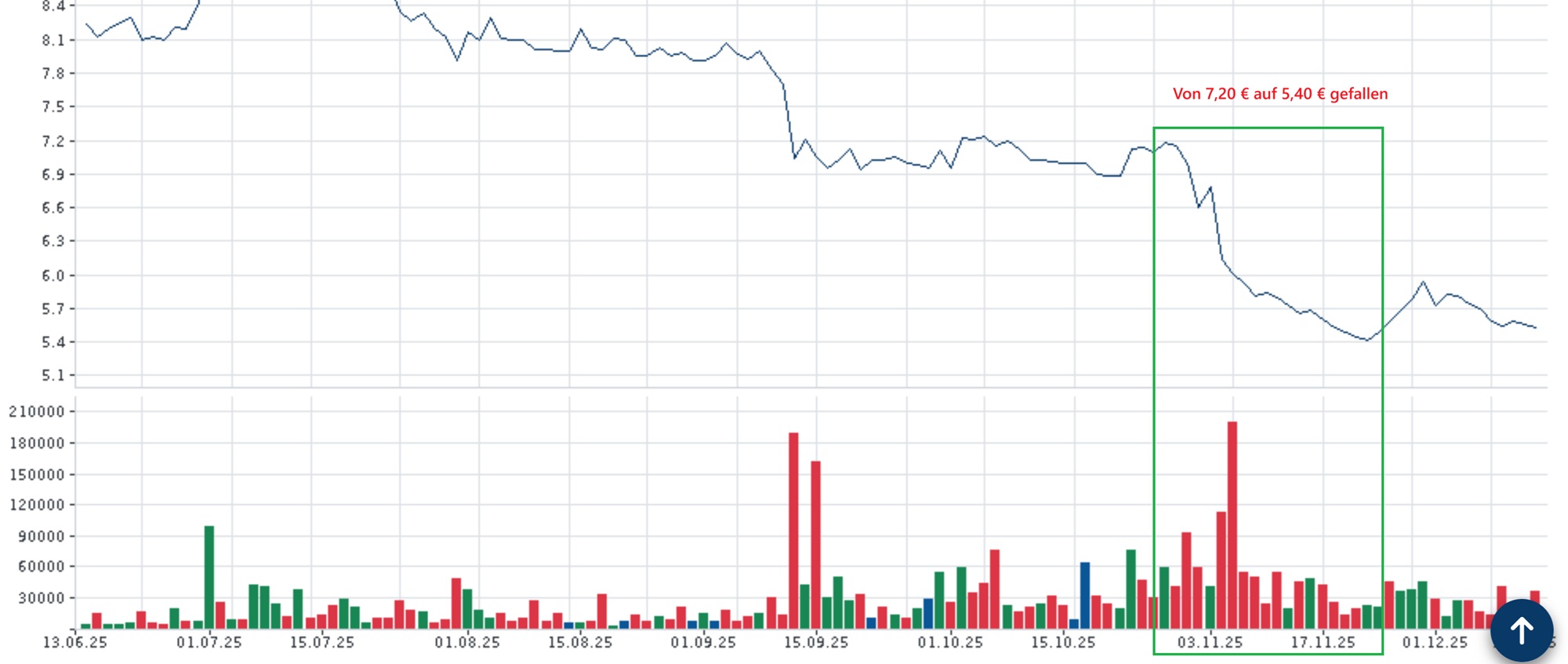 Genau zu diesem Zeitpunkt begann der Abverkauf, und in den vier Wochen vor dem Rauswurf, ist der Kurs von 7,20 € auf 5,40 € also um 25 % gefallen, und das ist bei Dir nichts? Eindeutiger kann es ein Chart gar nicht anzeigen.