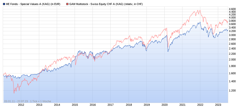 Der ME Fonds – Special Values A (ISIN: LU0150613833) von Dr. Markus Elsässer ist ein flexibler Mischfonds, der auf langfristigen Kapitalzuwachs durch Investitionen in Qualitätsaktien abzielt. Seit seiner Auflage im Juli 2002 erzielte der Fonds eine durchschnittliche jährliche Rendite von über 7 % und verzeichnete nur drei Verlustjahre, wobei der größte Rückgang während der Finanzkrise 2008 bei etwa 15 % lag .(fondsdiscount.de, dasinvestment.com)