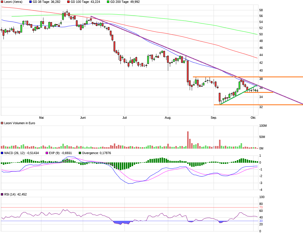 Wenn ich es rein charttechnisch sagen müsste (was ich nicht tue), würde ich per StopBuy über 38,7 € einsteigen, oder antizyklisch bei 33 € oder 30 € kaufen, vielleicht in zwei Tranchen.