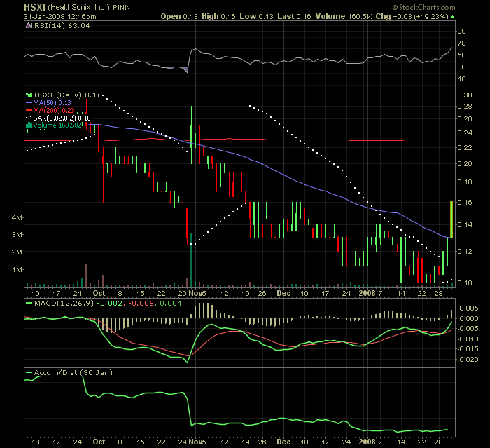 Here's an update sent out to known HSXI shareholde­rs from Investor Relations at Health Sonix. Looking good for 2008.