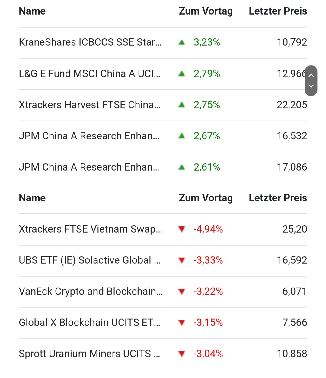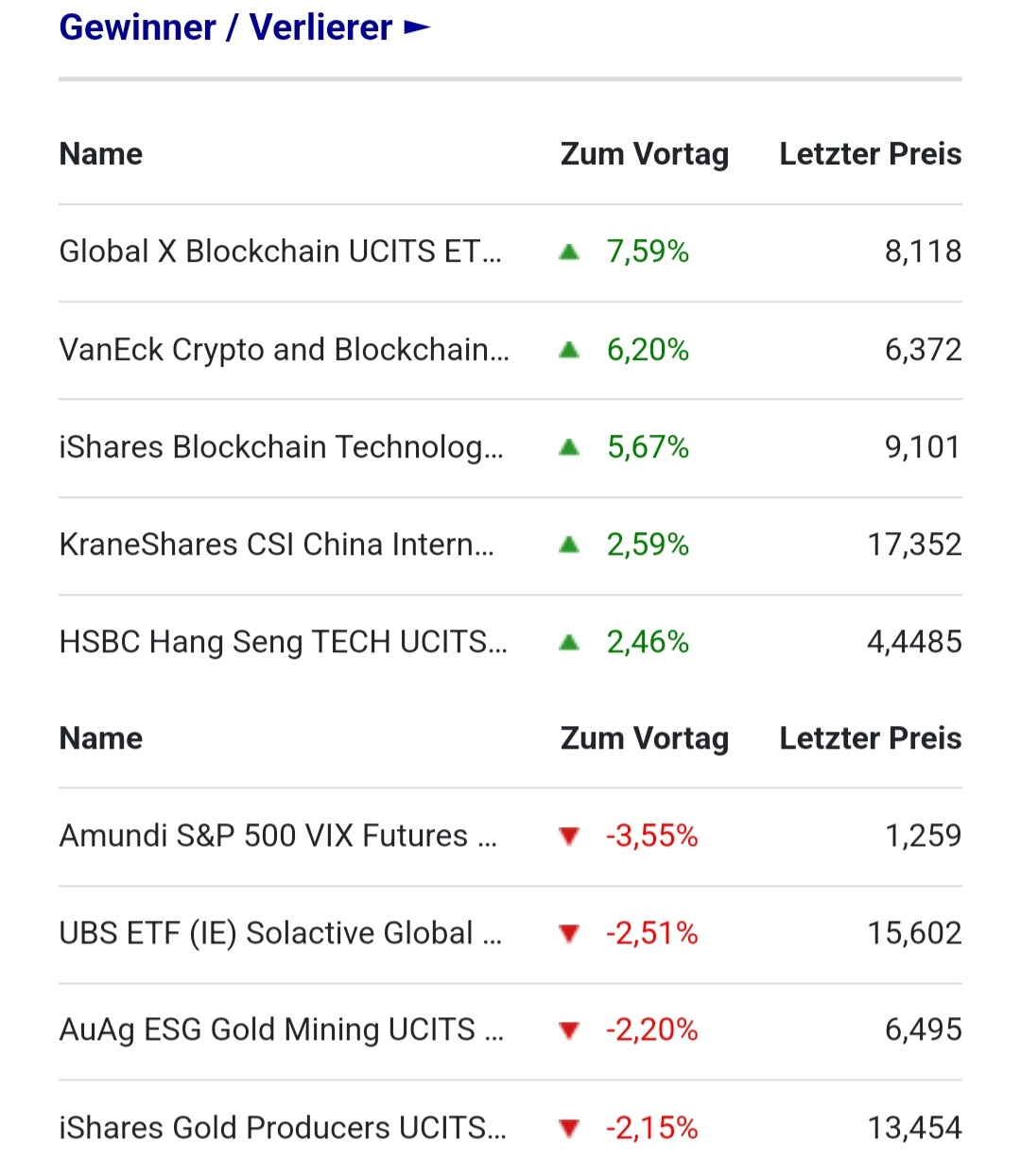 Mal schauen wo sie Montag stehen. Sie eignen sich hervorragend für meine Staffelstrategie. Als erstes wird der iShares gekauft weil er eher defensiv besetzt ist. Die temperamentvollen wollen wir ja unten kaufen, quasi als Schmerzensgeld. Gehts nicht weiter runter ist auch gut. Irgendwas geht immer in die Knie.