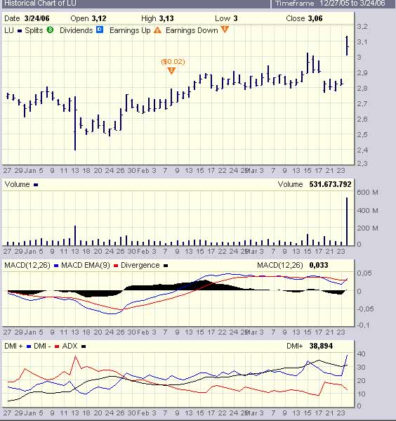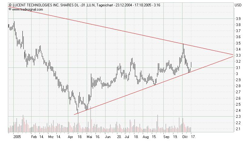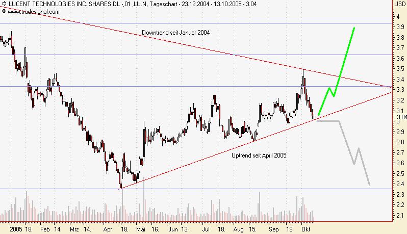 lucent braucht jetzt noch mehr impulse. nächster charttechnischer widerstand bei 3.14$ (aktueller Kurs: 3.06$). Sollte die Aktie ausbrechen sehe ich Potential bis 3.70$.