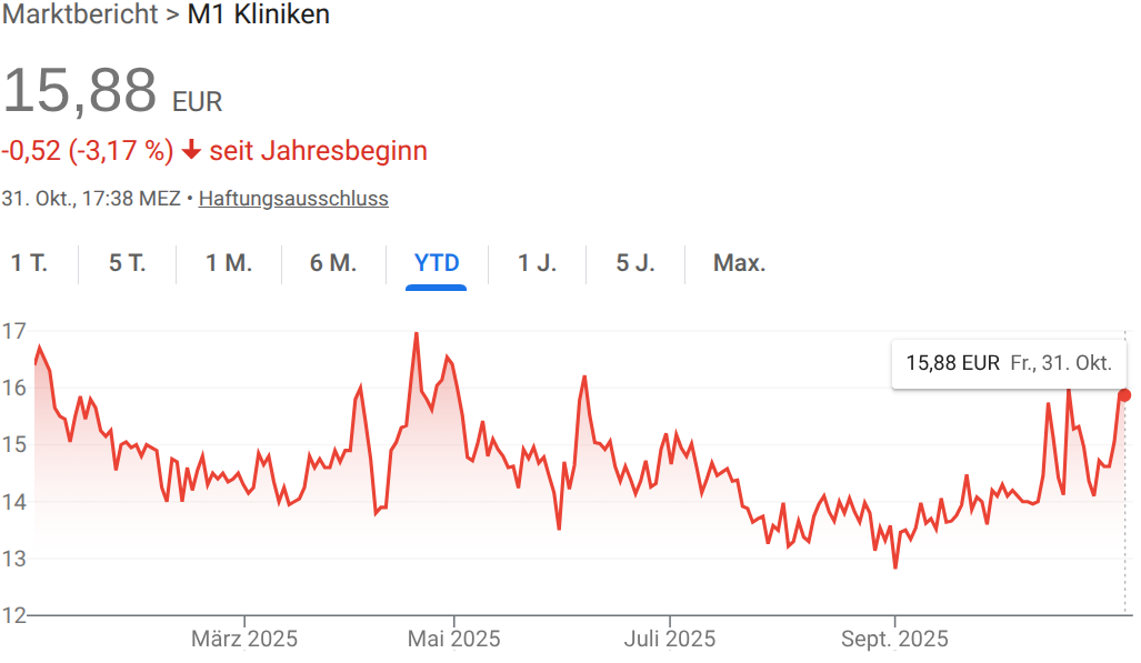 | M12 | M1 Kliniken AG | €15.90 | +8.2% | -0.5% |