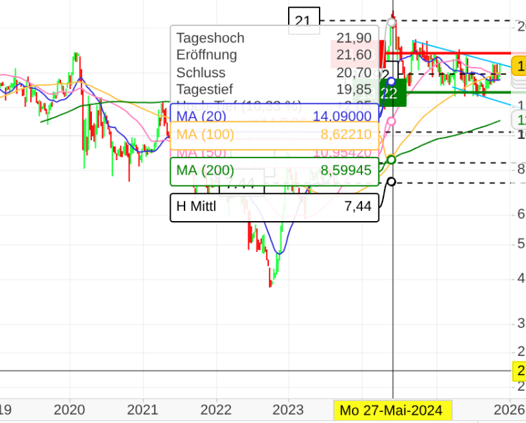 - Das neue Kursziel liegt 49 % über dem letzten Schlusskurs von €18,80.