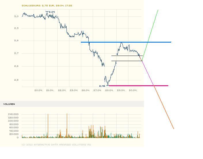 Also morgen beobachten, sollte morgen nicht die 2,82€ erreicht werden, könnte es zum nochmaligen Test