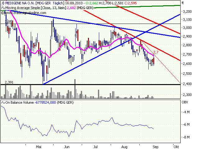 Ein Boden scheint sich um ca. 2,60 € gebildet zu haben.