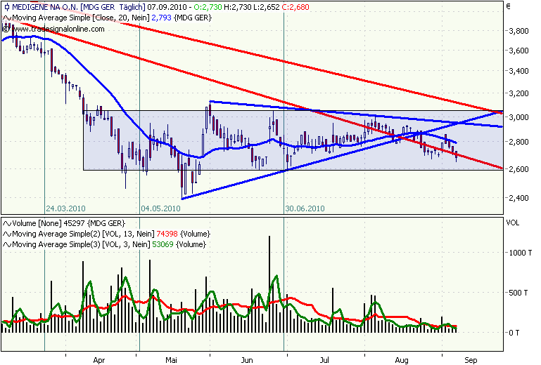 Es wird schön langsam Fad um Medigene. Doch sollte man die letzten Aussagen vom 16.09.2010 nicht vergessen die da lauteten: ..... MediGene ist bestrebt,