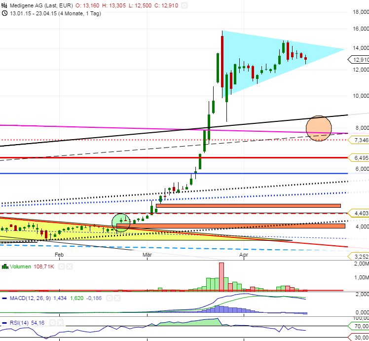 2015 wird spannend sein, ob Medigene die 180 Grad Wende zurück zur Spitzenposition in den neuen Krebs-Immuntherapien vollständig gelingt und die Aktie im wahrsten Sinne des Wortes auch in den Charts 'die Kurve kriegt'.