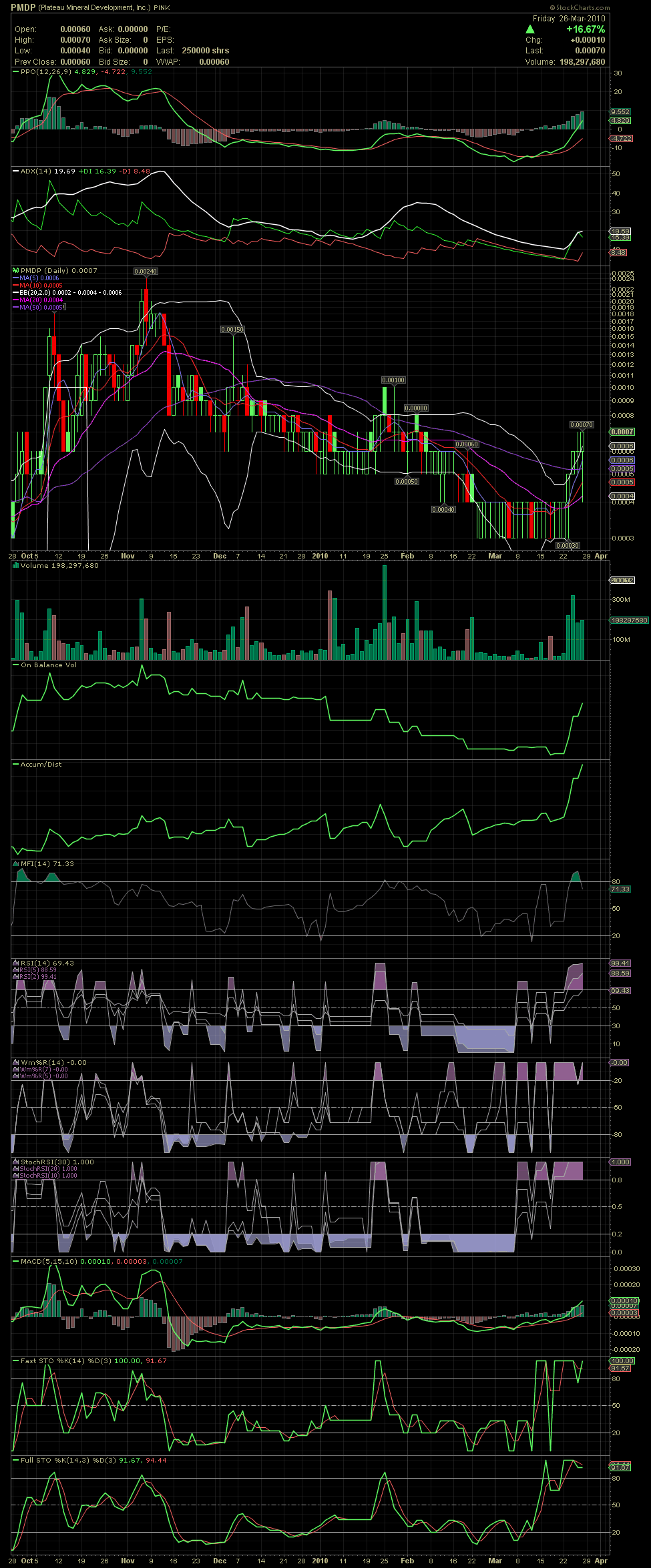 PMDP -- still holding -- CEO states killer news coming, fins are great, converter paid for, jv DONE 100% & its time to roll ---- just waiting on news --- pick up the tripswhilst they last http://finance.yahoo.com/q?s=pmdp.pk