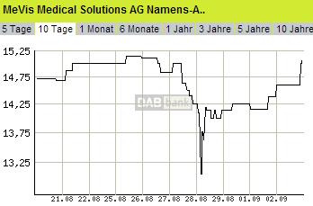In Nebenwertekreisen zählt die Aktie von MeVis Medical Solutions schon seit geraumer Zeit wieder zu den Favoriten. Die Schockmeldung von Anfang des Jahres, wonach der bislang wichtigste Kunde Hologic ab 2016 deutlich weniger Geschäft mit den Bremern machen wird, ist verdaut. Die Investoren trauen dem Unternehmen zu, neue Wachstumsfelder zu erschließen. Ganz vorn steht dabei das Lungenkrebs-Screening. "Das ist ein sehr interessanter Markt für uns", betonte Finanzvorstand Robert Hannemann bei seiner Präsentation auf dem Frankfurter Eigenkapitalforum.