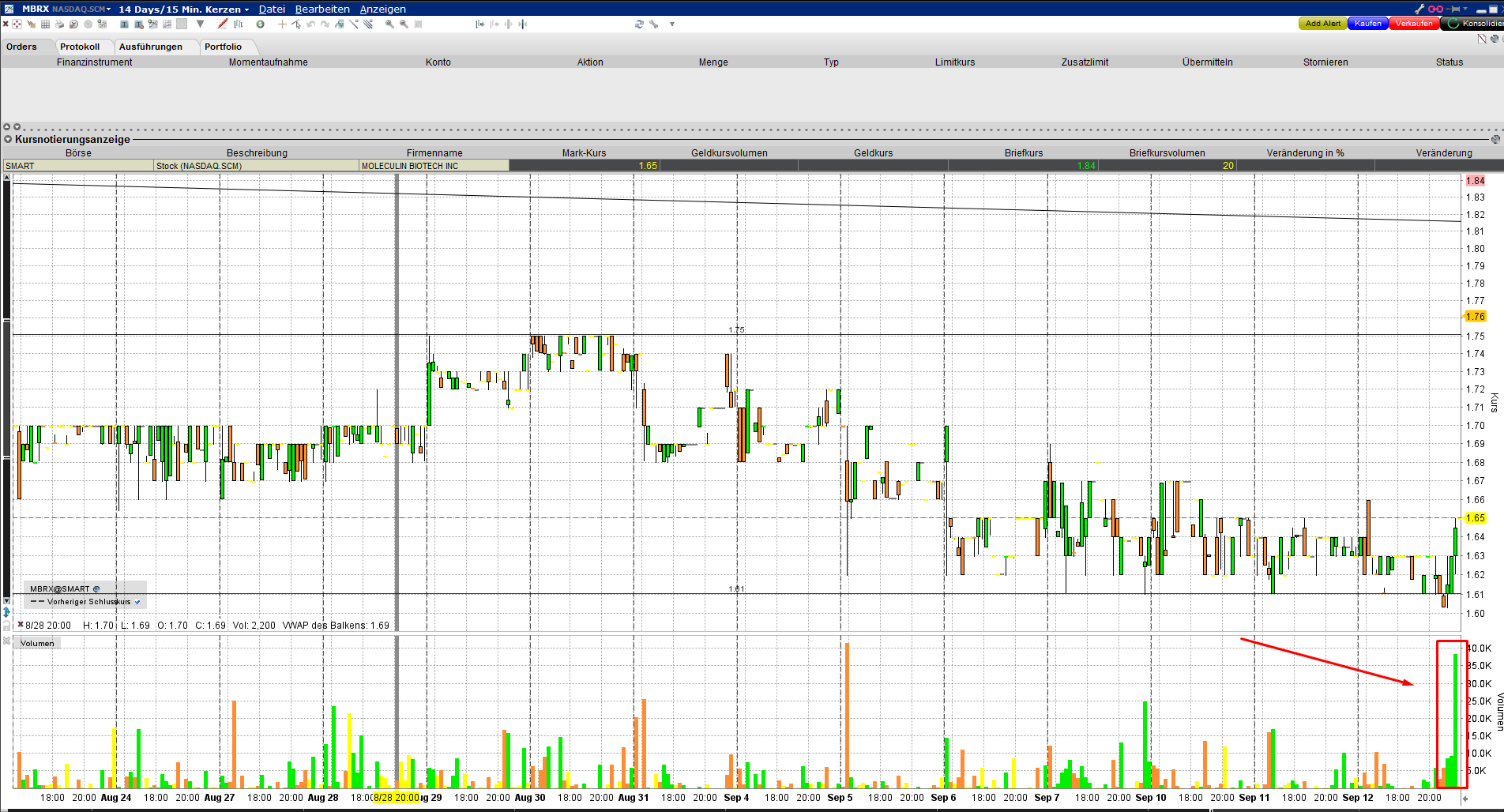 weiter ... siehe heutiger Kursverlauf. Moleculin verkauft Aktien an Lincoln ... dann wird fleißig abgeladen bzw. über einen anderen Broker massiv geshortet und in den nächsten Tagen gecovert. Trauerspiel, aber leider die Wahrheit der großen MM.