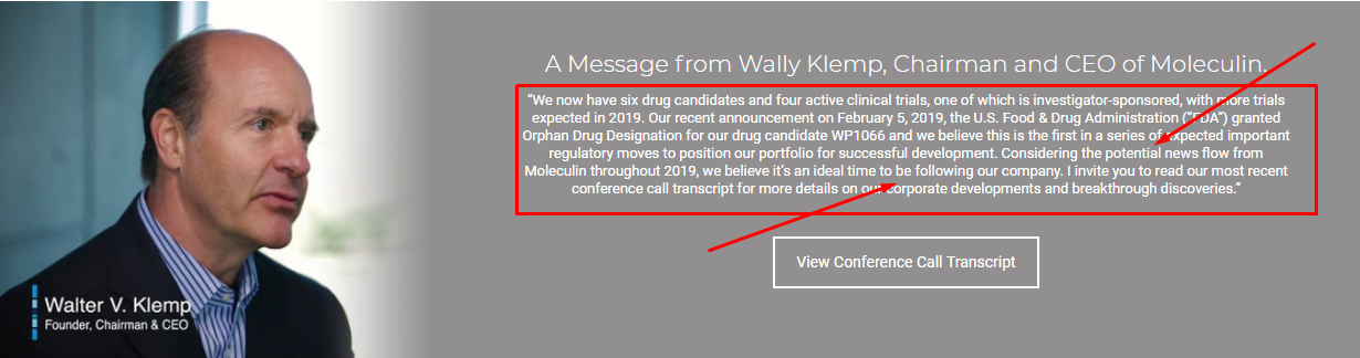 "...Walter Klemp, Vorsitzender und CEO von Moleculin Biotech