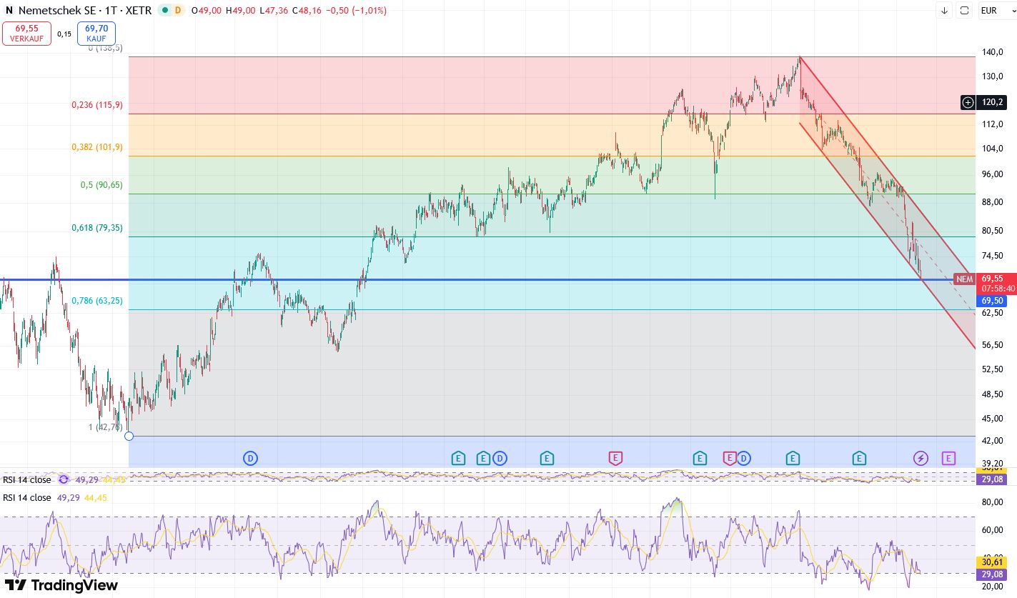 Nemetschek Die Nemetschek­-Aktie treibt Anlegern weiterhin die Tränen in die Augen. Mit einem Kursverlus­t von -8% ist der Bausoftwar­e-Anbieter­ am Montagmorg­en der mit Abstand schwächste­ Wert im MDAX. Innerhalb eines halben Jahres hat sich der Aktienkurs­ fast halbiert. Was zieht die Nemetschek­-Aktie immer tiefer in den Kurskeller­ und ist jetzt vielleicht­ der beste Zeitpunkt für einen Kauf?
